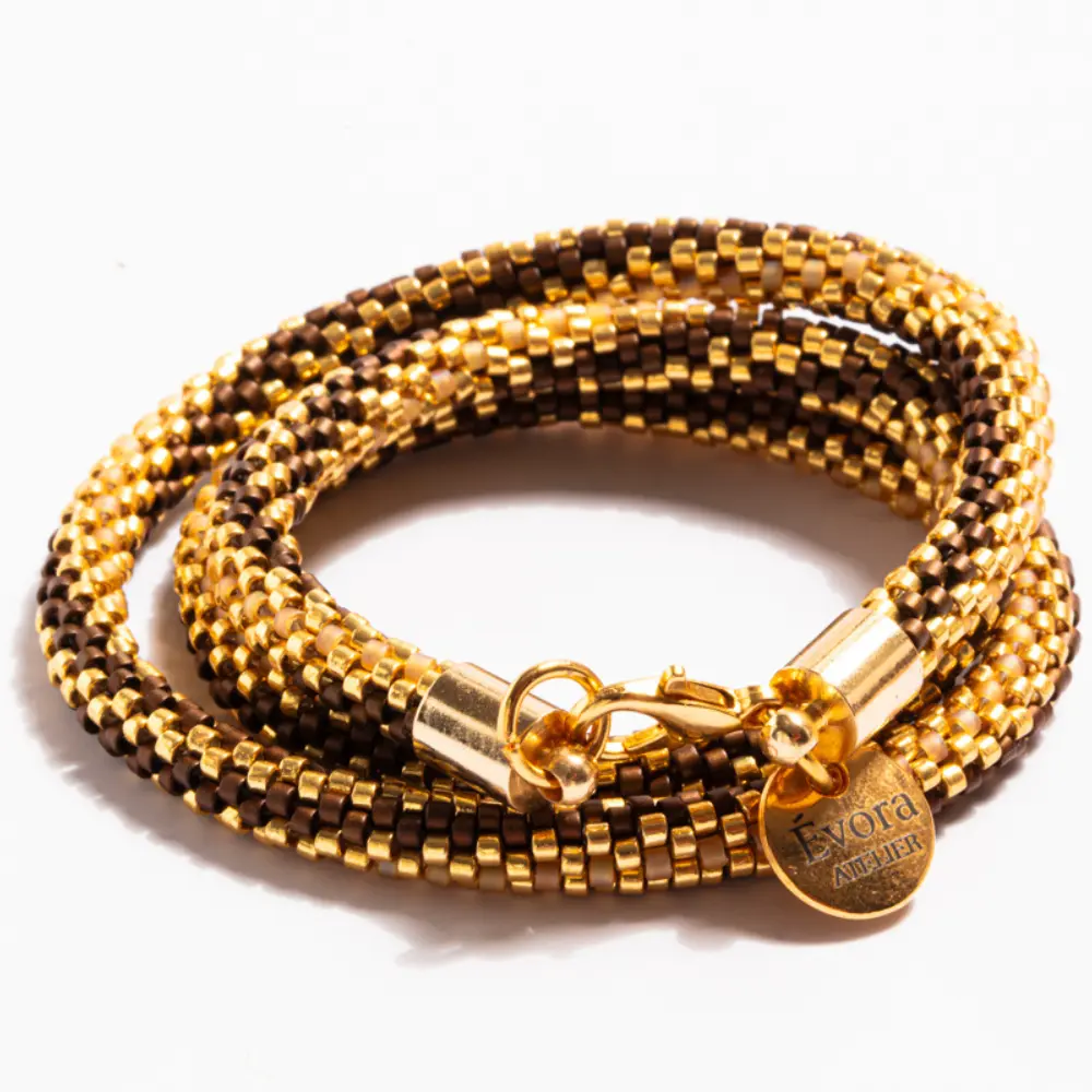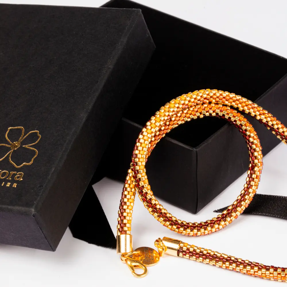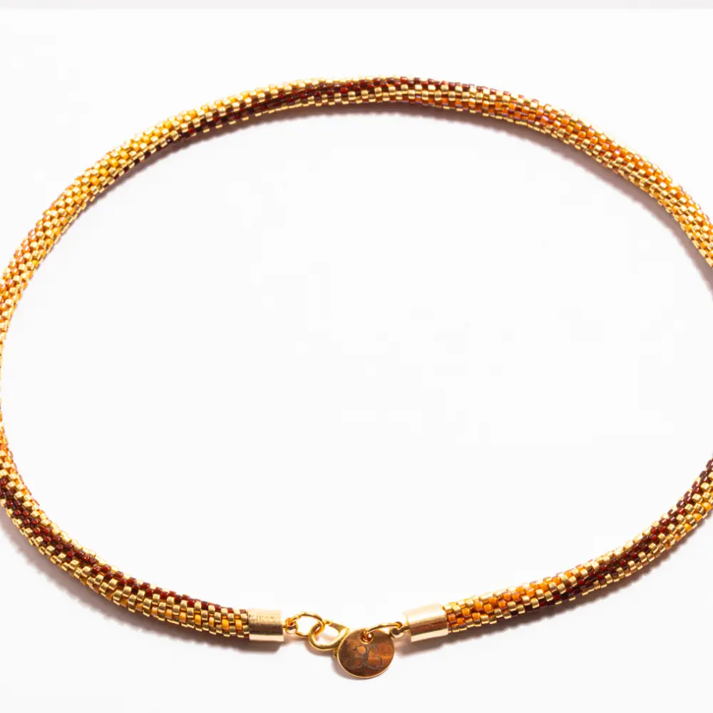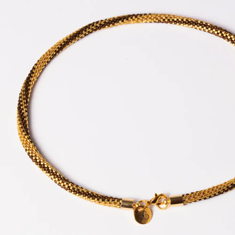 / Colar Caminhos de Miçangas Caramelo com Castanha Torcida