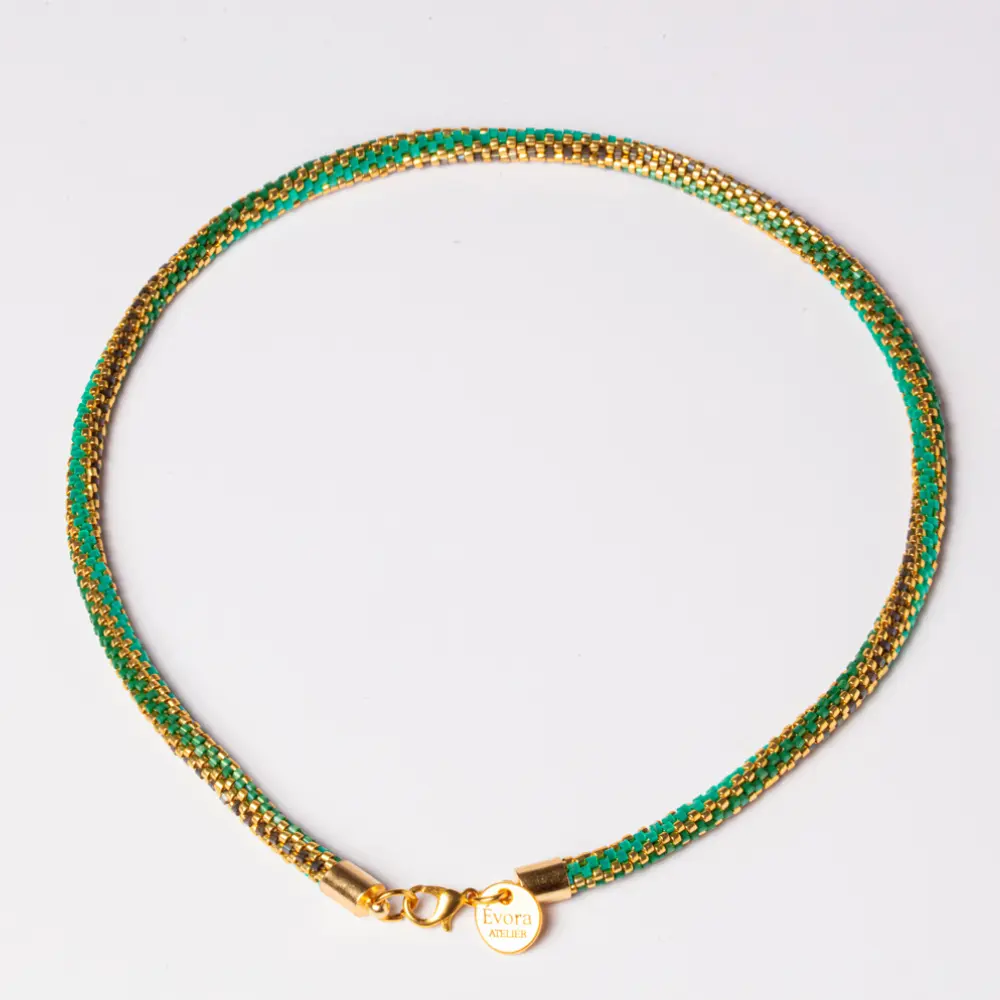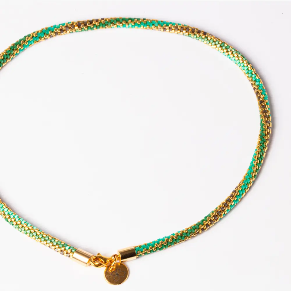 Cada peça é inspirada e desenvolvida para refletir uma verdadeira joia artesanal de miçangas com diversos materiais preciosos. Com pulseiras e colares que convivem harmoniosamente entre si, a coleção “Caminhos” convida você a trilhar seu próprio estilo, misturando cores e materiais em composições únicas e versáteis.