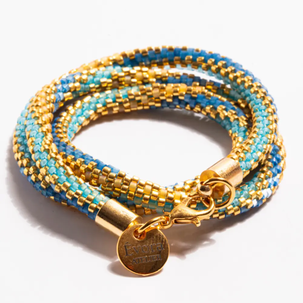 Colar Caminhos de Miçangas Azuis com Marfim Torcida