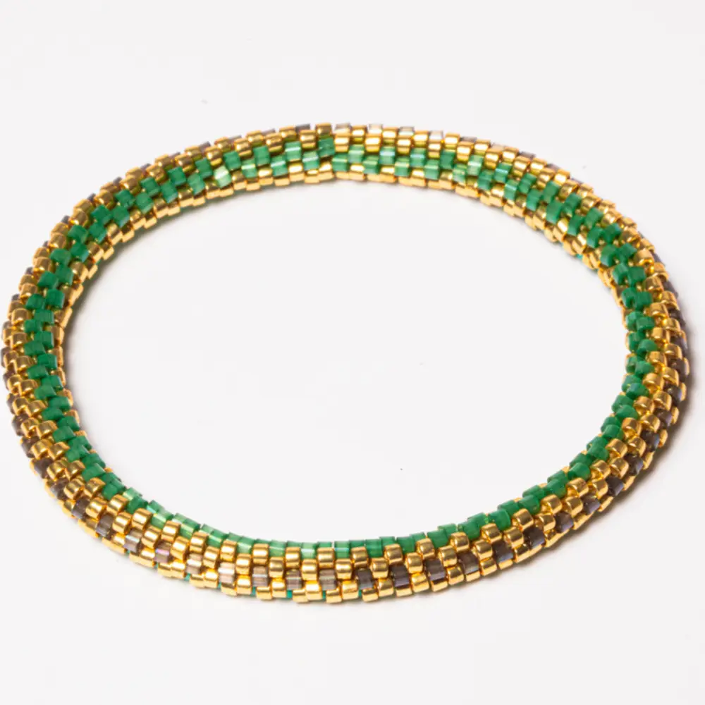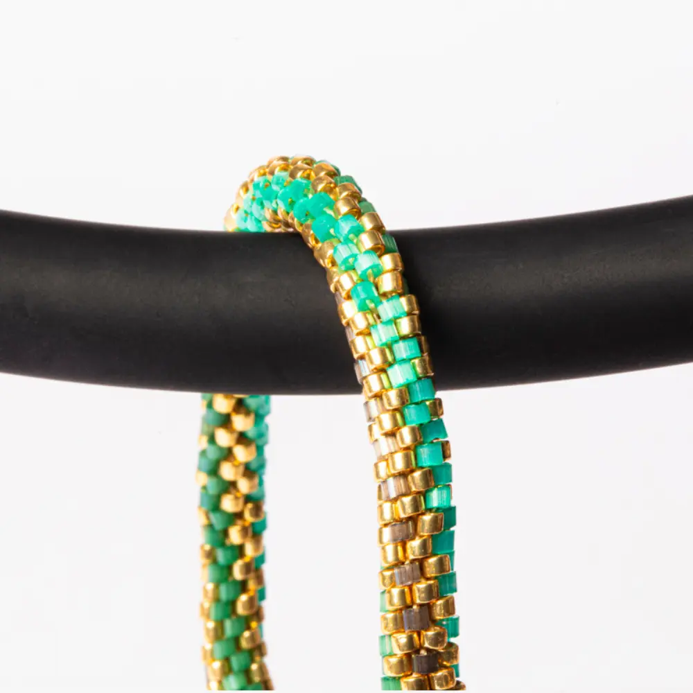 Pulseira Caminhos de Miçangas Verdes com Oliva Torcida