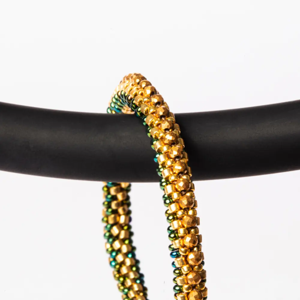 Cada peça é inspirada e desenvolvida para refletir uma verdadeira joia artesanal de miçangas com diversos materiais preciosos. Com pulseiras e colares que convivem harmoniosamente entre si, a coleção “Caminhos” convida você a trilhar seu próprio estilo, misturando cores e materiais em composições únicas e versáteis.