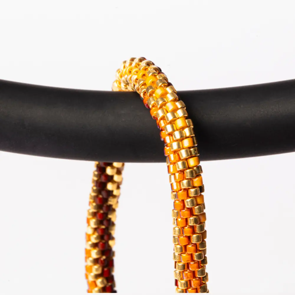 Pulseira Caminhos de Miçangas Caramelo com Castanha Torcida