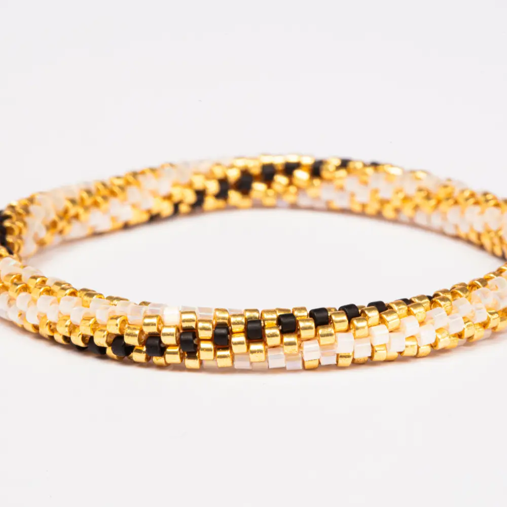 Pulseira Caminhos de Miçangas Madre Branca com Preto Torcida