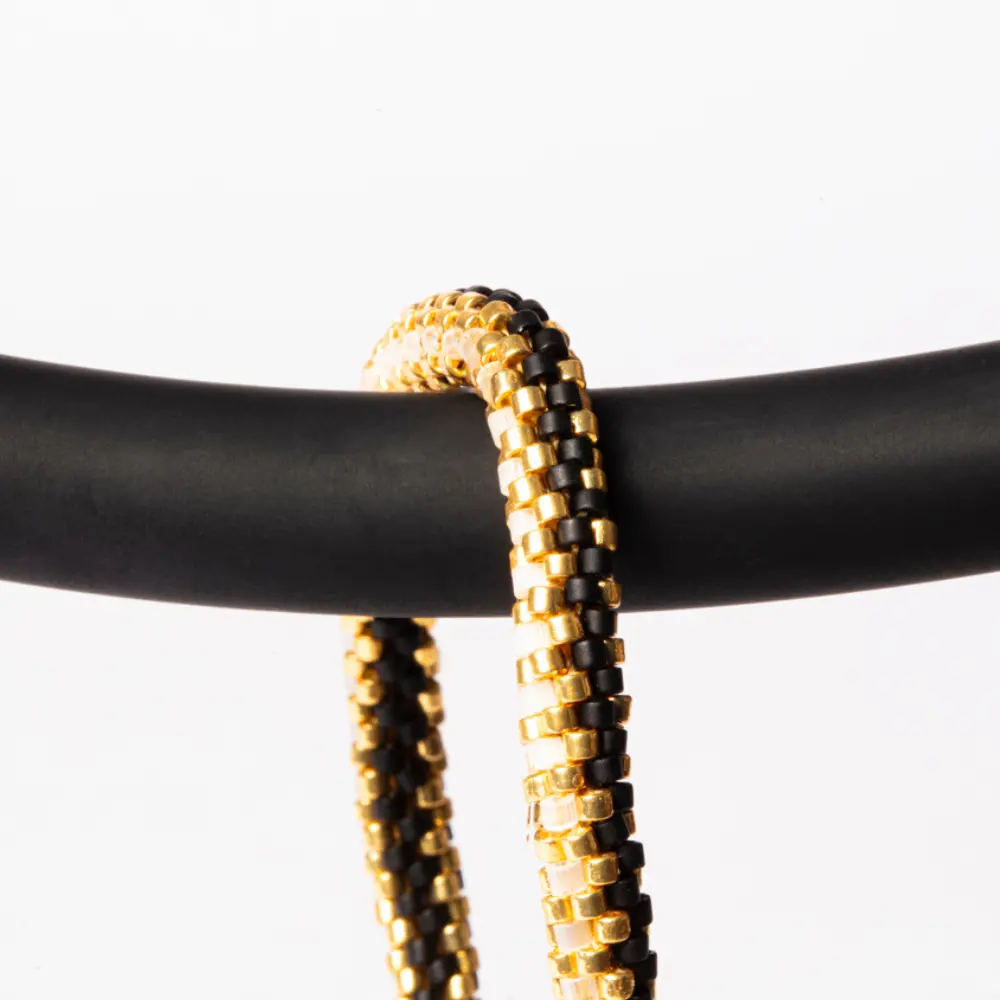 Pulseira Caminhos de Miçangas Madre Marfim com Preto