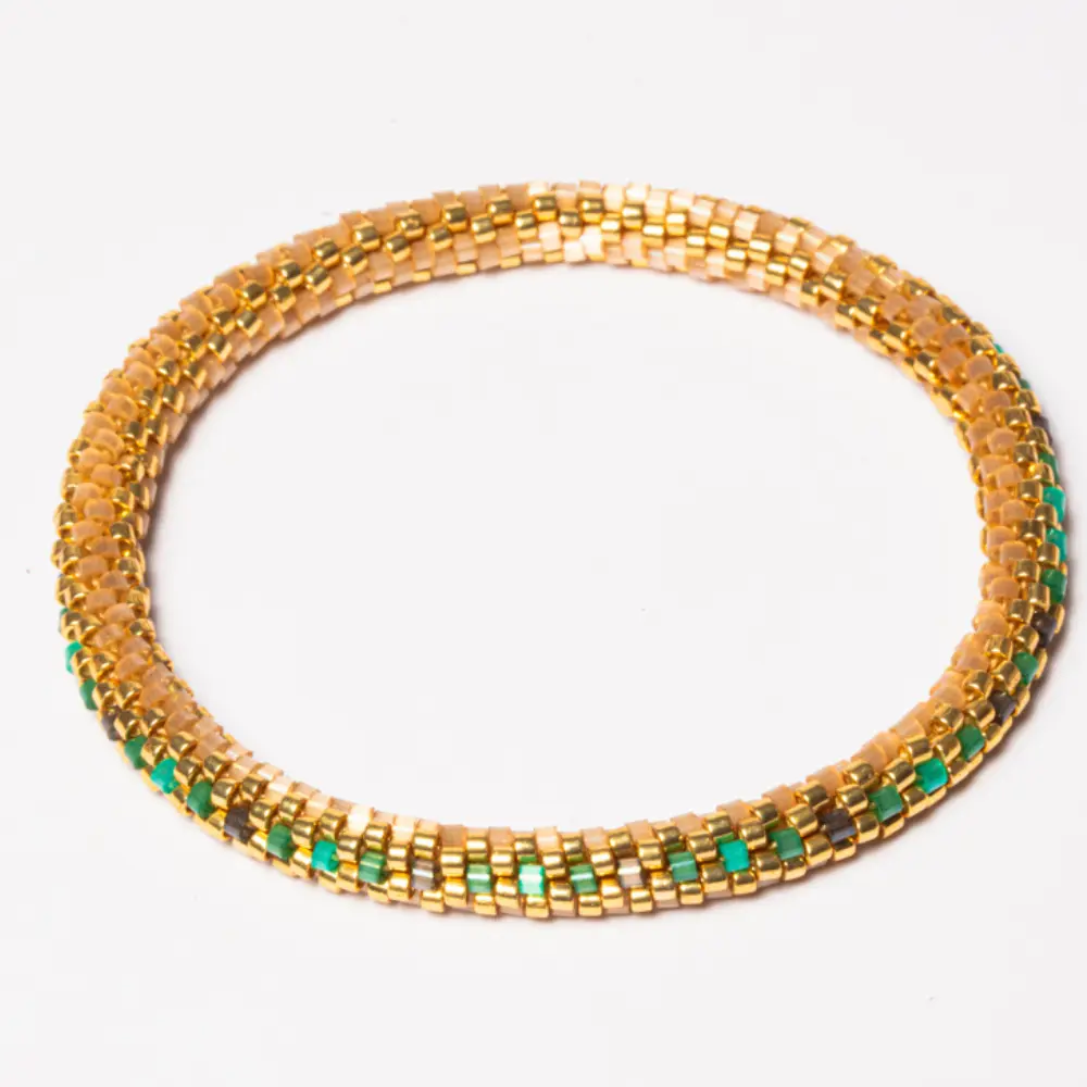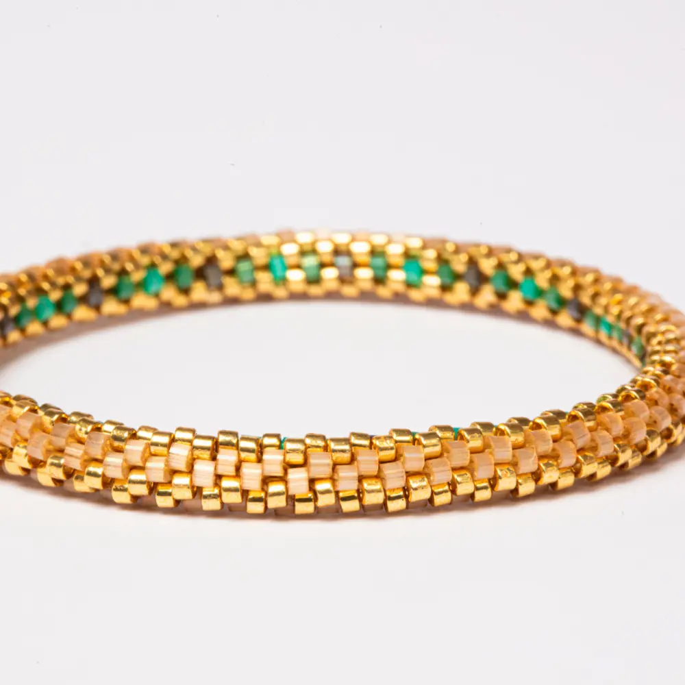 Pulseira Caminhos de Miçangas Madre Marfim com Verde