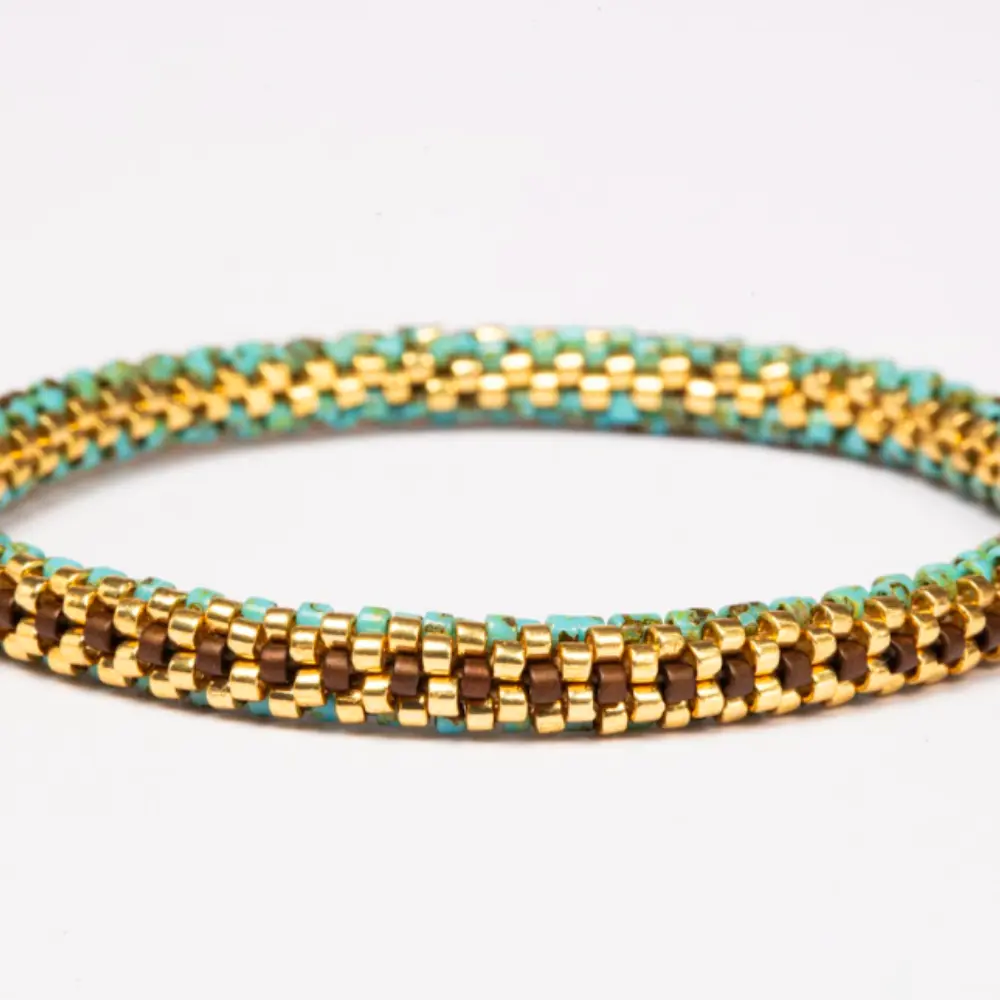 Pulseira Caminhos de Miçangas Turquesa Picasso com Café