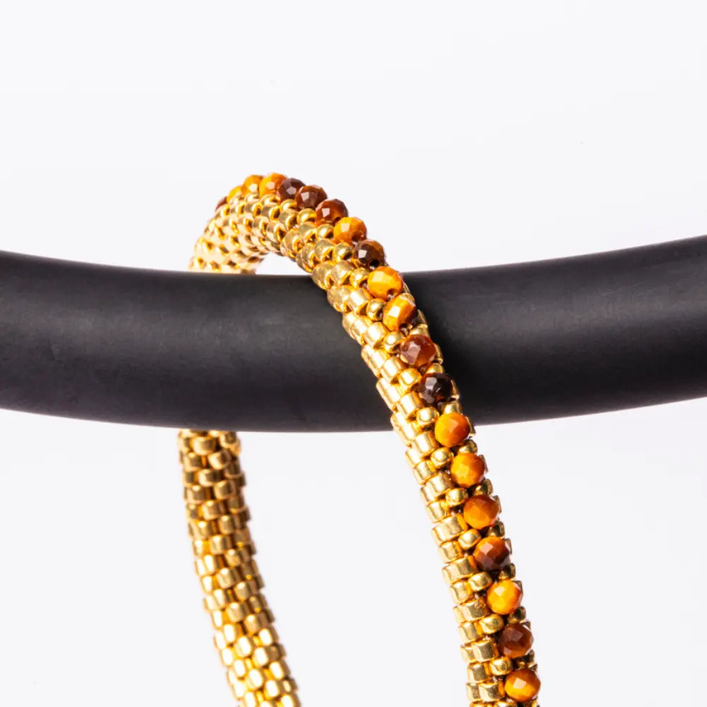 Cada peça é inspirada e desenvolvida para refletir uma verdadeira joia artesanal de miçangas com diversos materiais preciosos. Com pulseiras e colares que convivem harmoniosamente entre si, a coleção “Caminhos” convida você a trilhar seu próprio estilo, misturando cores e materiais em composições únicas e versáteis.