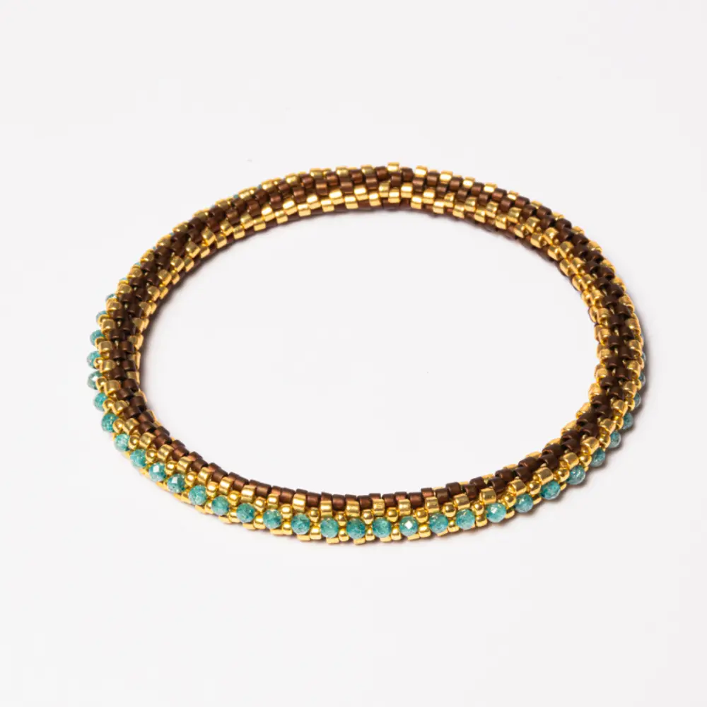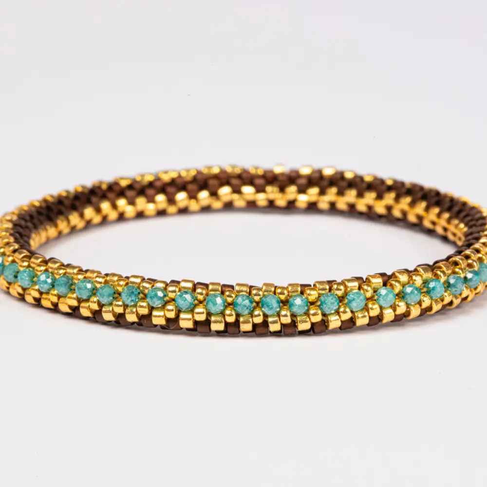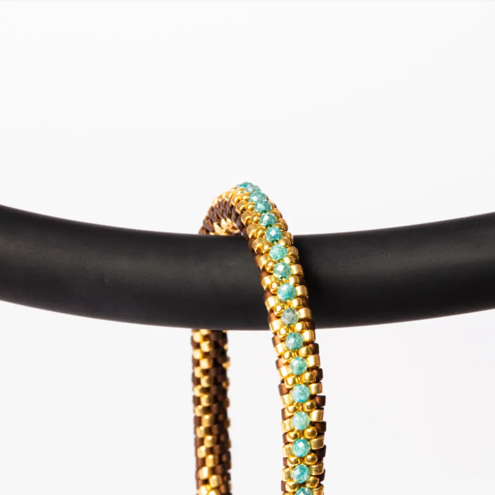 Pulseira Caminhos de Zircônias Verde Turquesa com Café
