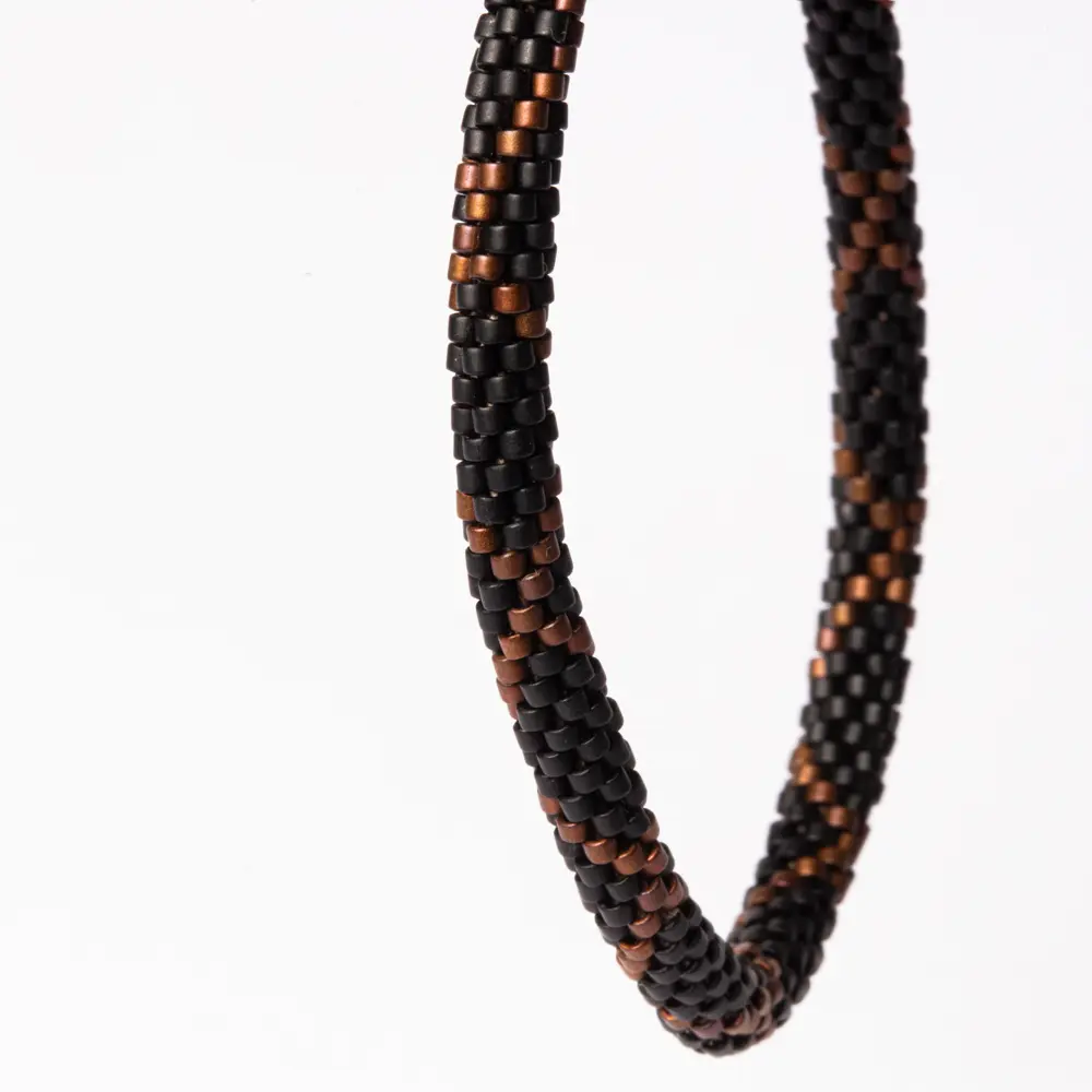 Essa coleção inovadora de pulseiras masculinas combina o melhor do artesanato tradicional com o design contemporâneo. Feita à mão com aproximadamente 1.000 miçangas Miyuki e Ornela, cada peça é uma verdadeira obra de arte em forma de joia.